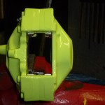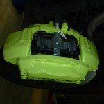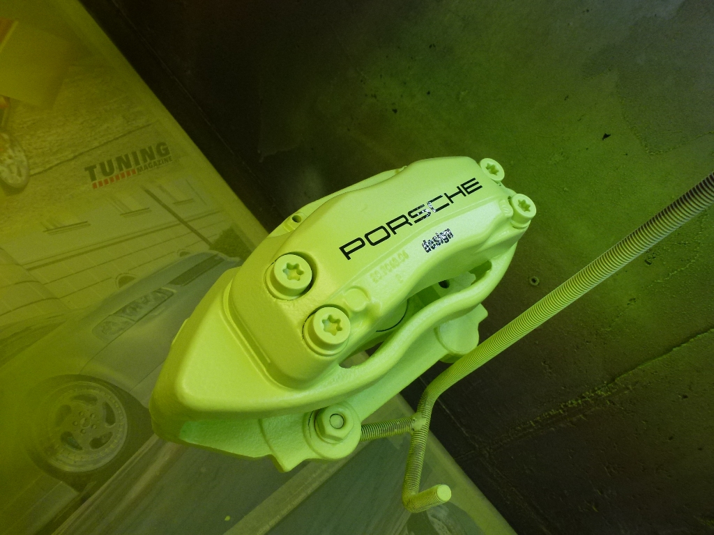tady je výrazné lakování brzdičů na ml, ve stylu porsche hybrid a právě odtud je vybrán barevný odstín zeleno-žluté barvy. design ale není to nejdůležitější, co se na brzdách řešilo. u starších ročníků aut se běžně setkáváme s oxidací brzdičů, jelikož povrchová úprava duralových třmenů je slabá a na zimní období solení naprosto nevyhovující. v galerii postupu práce můžeme vidět vyžrání do hloubky, což se musí dokonale vyčistit a novým lakem povrch ošetřit. rovnou tu byly vyměněny brzdové kotouče, ty byly nalakované speciální barvou a osazené keramickými brzdovými deskami. všechny kovové součásti šly do zinku, po smontování brzd byla na auto nasazena nově zrepasovaná kola se speciálním lakováním.